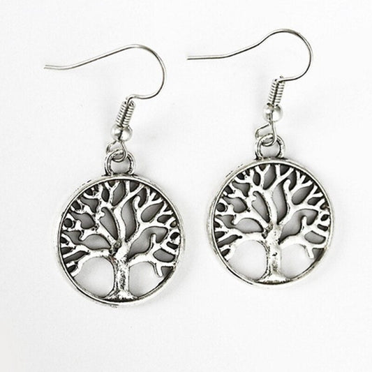 Fashion Natural Stone Tree Of Life Pendulum Pendant Earrings For Women Healing Alloy Round Circle Dangle Earring Party Jewelry